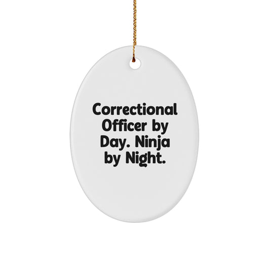 Correctional Officer Gifts from Friends for Christmas - Correctional Officer By Day. Ninja By Night. Oval Ornament