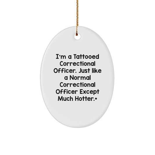 Funny Correctional Officer Gifts for Men from Friends, Unique Oval Ornament Christmas Decorations, I'm A Tattooed Correctional Officer Except Much Hotter+