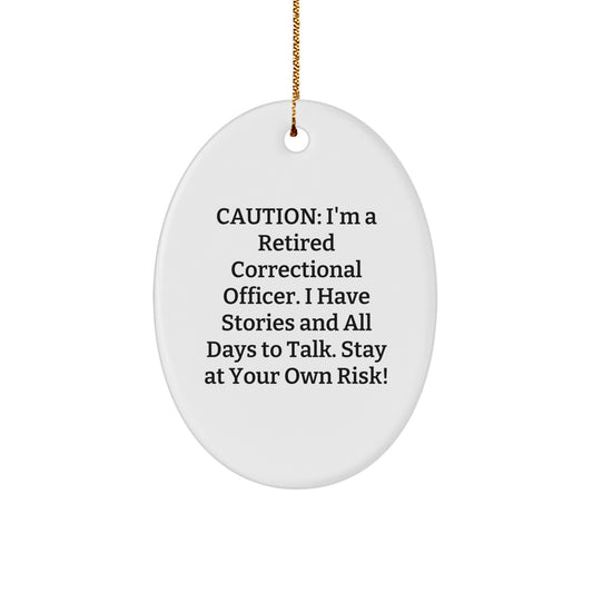 Correctional Officer Gifts from Friends - 'Caution: I'm A Retired Correctional Officer...' Oval Ornament, Christmas Unique Ideas for Men, Women, Coworkers, Family