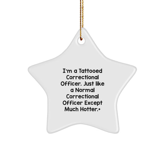 Funny Correctional Officer Gifts for Men, 'I'm A Tattooed Correctional Officer. Just Like A Normal Correctional Officer Except Much Hotter.' Star Ornament, Unique Christmas Decor