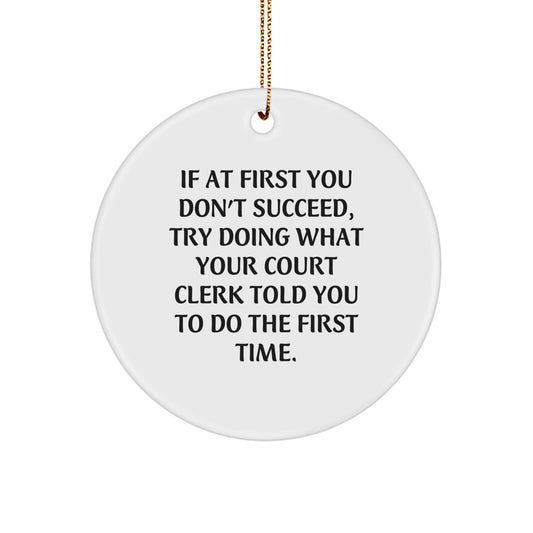 Funny Court Clerk Gifts from Family - Circle Ornament with If At First You Don't Succeed Quote for Court Clerks at Christmas