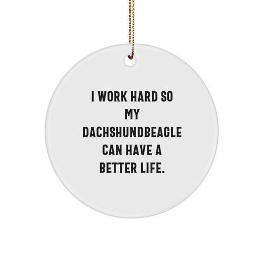 Dachshund Dog Lover Gifts from Friends and Family, I Work Hard So My Dachshundbeagle Can Have A Better Life., Oval Ornament for Christmas, Funny Quote