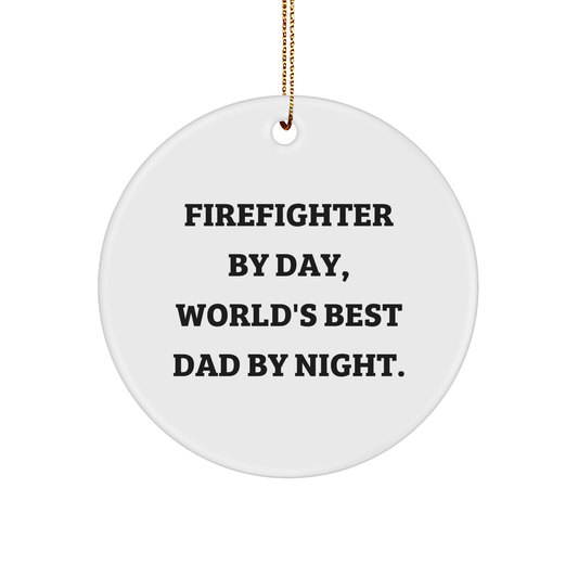 Firefighter Gifts from Men - Funny 'Firefighter By Day, World's Best Dad By Night' Circle Ornament for Christmas