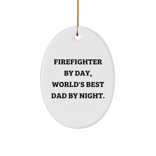 Firefighter Gifts from Men - Funny Oval Ornament for Christmas Unique Gifts - Firefighter By Day, World's Best Dad By Night.