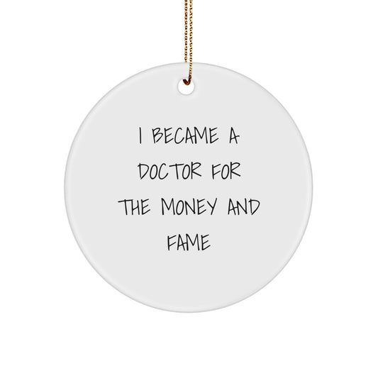 Funny Doctor Gifts for Christmas - Circle Ornament with I Became A Doctor For The Money And Fame Quote, Gifts from Friends to Doctor