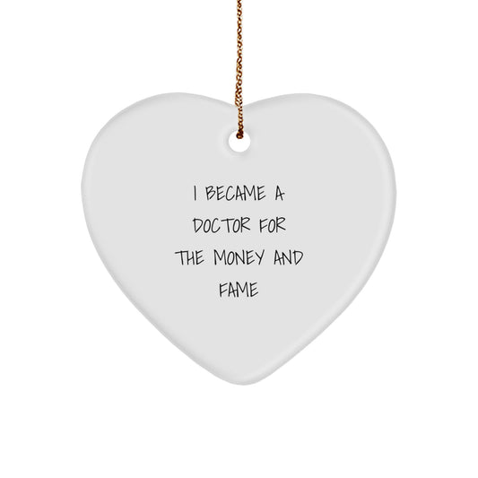 Funny Doctor Gifts from Friends for Men - Heart Ornament, I Became A Doctor For The Money And Fame, Christmas Unique Gifts