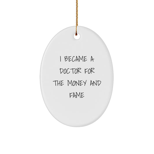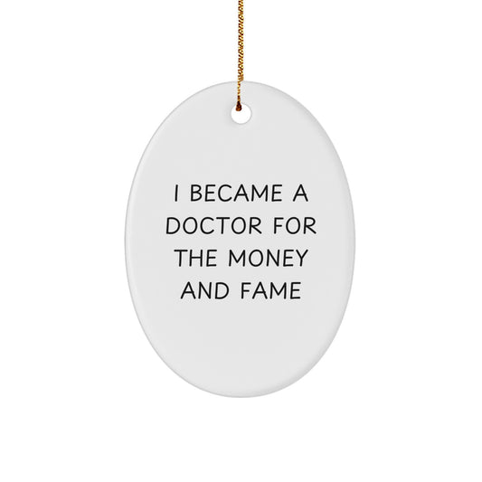 Funny Doctor Gifts for Men - Oval Ornament, 'I Became A Doctor For The Money And Fame', Christmas Unique Gifts from Friends, Family, Coworkers