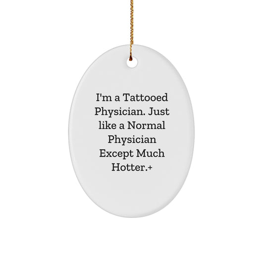 Funny Physician Oval Ornament Gifts from Men for Christmas Unique Gifts to Show Appreciation - 'I'm A Tattooed Physician. Just Like A Normal Physician Except Much Hotter.+'