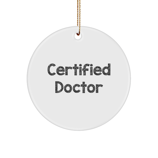 Funny Doctor Gifts from Friends for Christmas Circle Ornament, 'Certified Doctor' Quote, White, Circle Shaped, Durable MDF with High-Gloss Finish