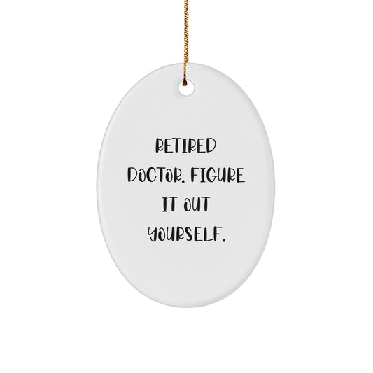 Funny Doctor Gifts from Men to Retired Doctors - Oval Ornament with 'Retired Doctor. Figure It Out Yourself.' Quote for Christmas