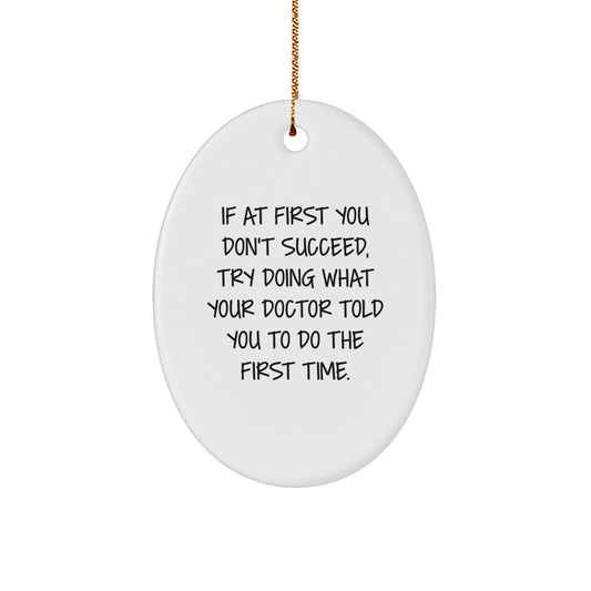 Funny Doctor Oval Ornament Gifts from Friends for Men and Women, Christmas Unique Gifts, If At First You Don't Succeed Quote