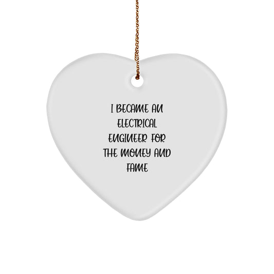 Funny Electrical Engineer Gifts from Friends, Heart Ornament for Electrical Engineer Men, 'I Became An Electrical Engineer For The Money And Fame' Christmas Unique Gifts