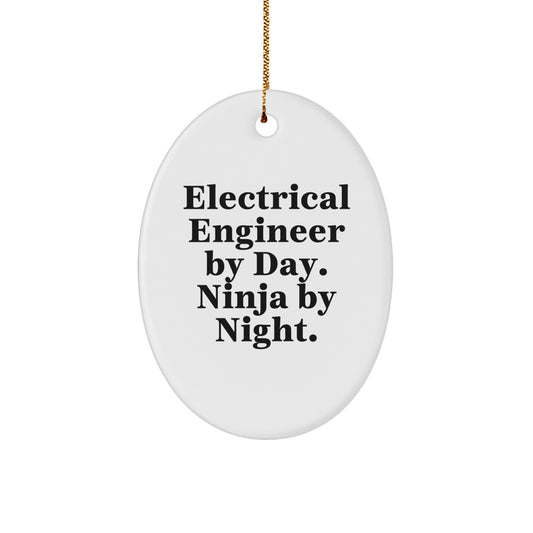 Electrical Engineer Gifts, Oval Ornament, Funny Quote, 'Electrical Engineer By Day. Ninja By Night.' Christmas Unique Gifts from Friends to Coworkers