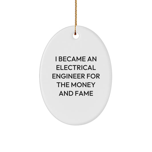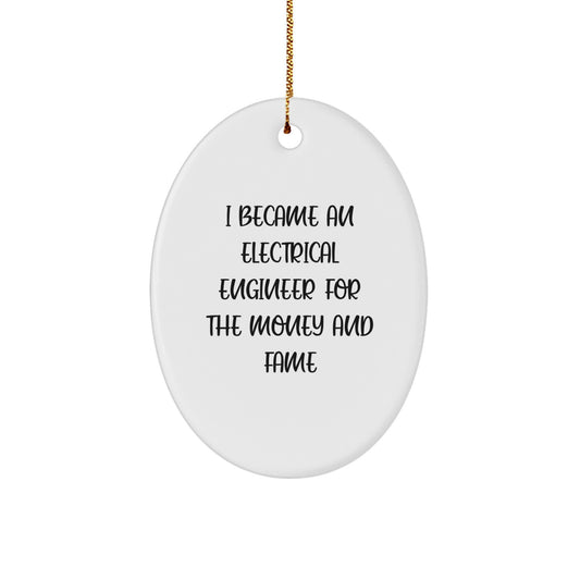 Funny Electrical Engineer Gifts, Oval Ornament Quote I Became An Electrical Engineer For The Money And Fame, Christmas Unique Gifts from Men to Women Electrical Engineers