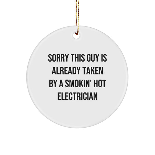 Funny Electrician Gifts, Sorry This Guy Is Already Taken Circle Ornament, Christmas Unique Gifts from Friends, Gifts for Electrician