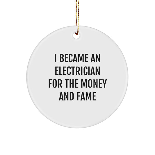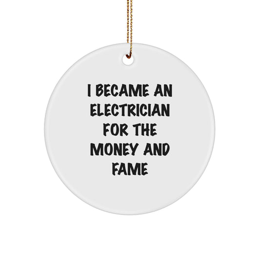Electrician Gifts from Family for Men - Circle Ornament 'I Became An Electrician For The Money And Fame' Funny Christmas Unique
