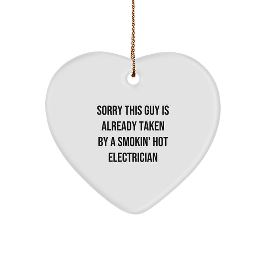 Funny Electrician Gifts from Friends - Heart Ornament Sorry This Guy Is Already Taken By A Smokin' Hot Electrician Quote for Christmas