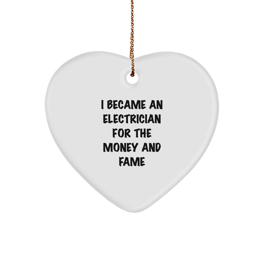 Funny Electrician Gifts from Friends and Family - I Became An Electrician For The Money And Fame Heart Ornament, Perfect for Christmas Unique Gifts, Electrician Heart Shaped Decoration