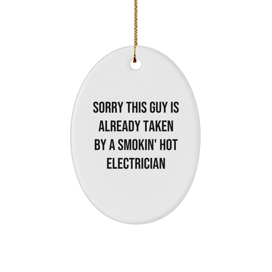 Gifts from Friends to Electrician - Sorry This Guy Is Already Taken Oval Ornament, Funny Electrician Gift for Christmas