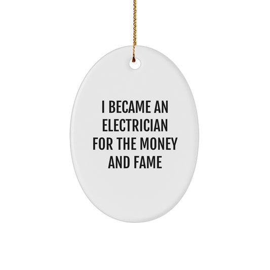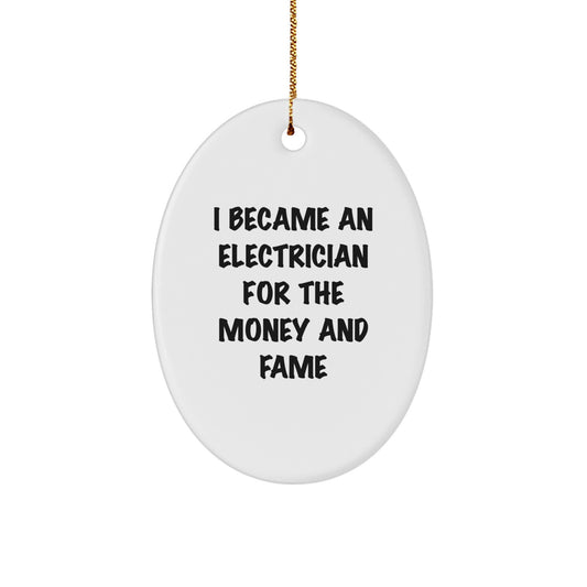 Funny Electrician Gifts for Men - Christmas Unique Oval Ornament, I Became An Electrician For The Money And Fame Quote, Gifts from Men to Electricians