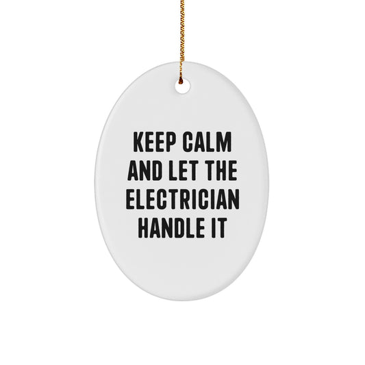 Funny Electrician Gifts for Christmas - Oval Ornament with 'Keep Calm And Let The Electrician Handle It' Quote - Gifts from Friends to Electrician, Electrician Decor, Electrician Home Decor