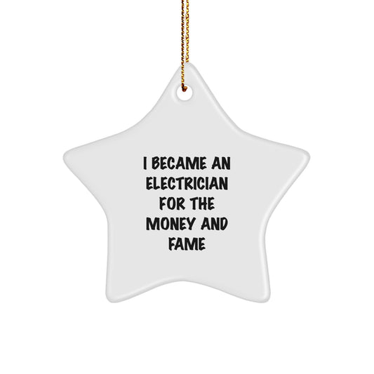Funny Electrician Gifts for Him - 'I Became An Electrician For The Money And Fame' Star Ornament, Christmas Unique Gifts from Friends or Family