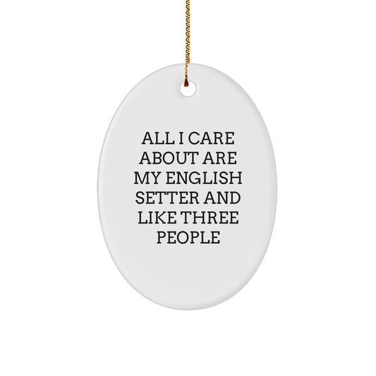 English Setter Dog Lovers' Oval Ornament, Gifts from Friends for Family, 'All I Care About Are My English Setter And Like Three People', Christmas Unique Present