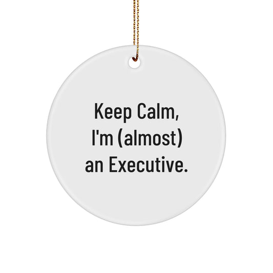 Funny Executive Christmas Unique Gifts from Friends, Circle Ornament for Men, Women, Coworkers, Family, Keep Calm I'm almost an Executive