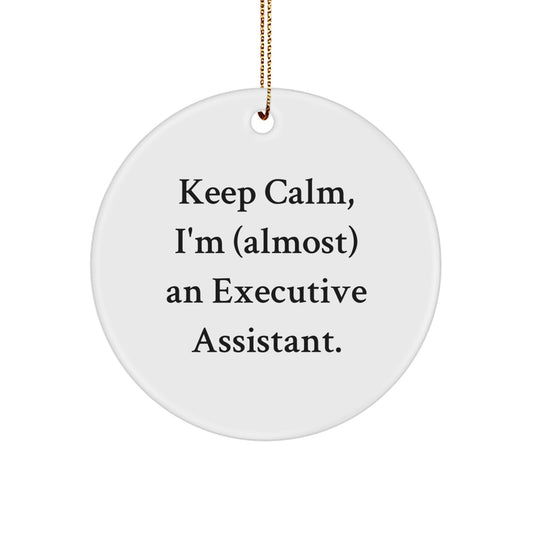 Funny Executive Assistant Gifts for Women, Circle Ornaments - 'Keep Calm, I'm (almost) An Executive Assistant.' Christmas Unique Gifts from Friends