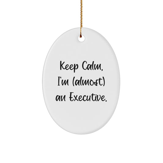Funny Executive Oval Ornaments Gifts from Friends for Men and Women - Keep Calm, I'm (almost) An Executive.