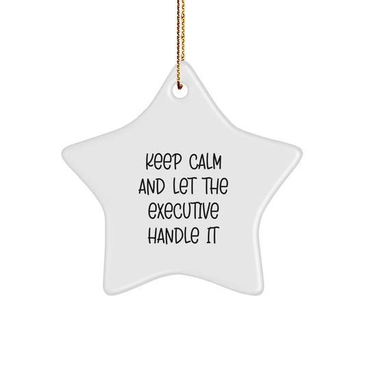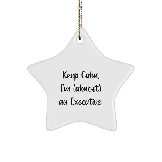 Funny Executive Gifts for Men, 'Keep Calm I'm almost an Executive' Star Ornament, Christmas Unique Presents for Office Workers