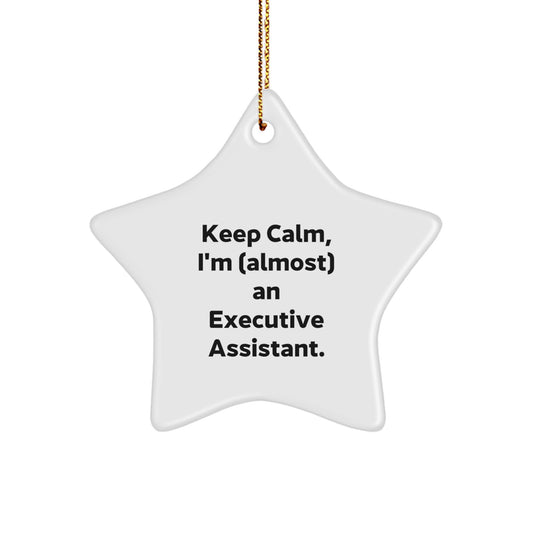 Funny Executive Assistant Gifts from Men, Women, Friends, Coworkers, Family - Keep Calm, I'm (almost) An Executive Assistant. Christmas Unique Star Ornament