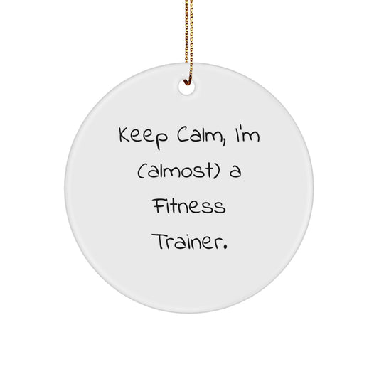 Funny Fitness Trainer Christmas Circle Ornament Gifts from Men to Fitness Trainers - Keep Calm I'm almost a Fitness Trainer - White