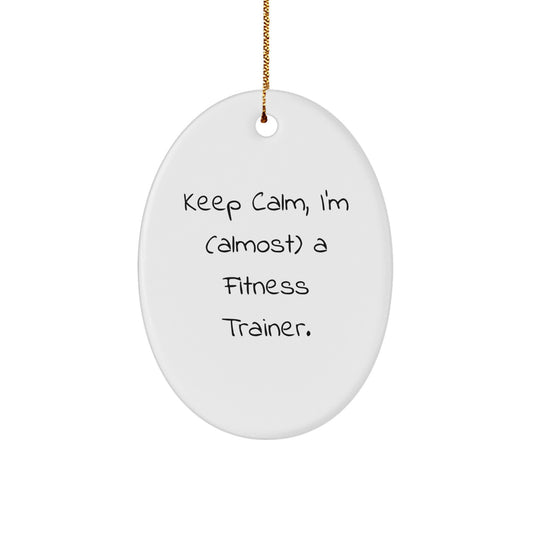 Funny Fitness Trainer Oval Ornament Gifts for Men, Women, Friends, Coworkers, Family - Keep Calm I'm (almost) A Fitness Trainer!