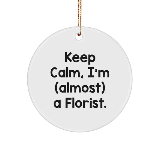 Funny Florist Gifts from Men to Friends for Christmas - 'Keep Calm, I'm (almost) A Florist' Circle Ornament