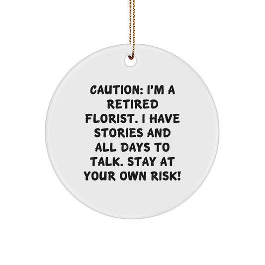 Funny Florist Gifts for Friends from a Retired Florist, Circle Ornament, Christmas Unique Decorations, Caution: I'm A Retired Florist. I Have Stories And All Days To Talk. Stay At Your Own Risk!