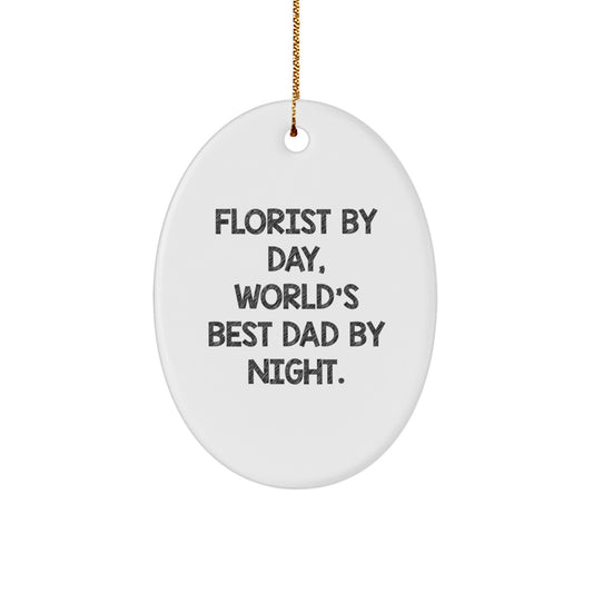 Florist By Day, World's Best Dad By Night. Gifts from Men to Florist, Unique Oval Ornament for Christmas