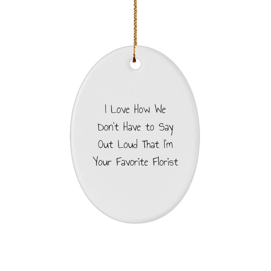 Funny Florist Gifts from Friends for Favorite Florist Oval Ornament, 'I Love How We Don't Have To Say Out Loud That I'm Your Favorite Florist' Christmas Ornament