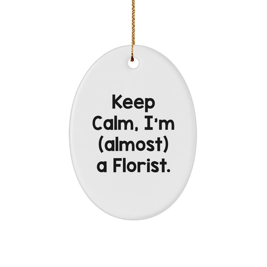 Funny Florist Gifts from Men - Oval Ornament Keep Calm I'm (almost) A Florist - White Oval Shaped MDF