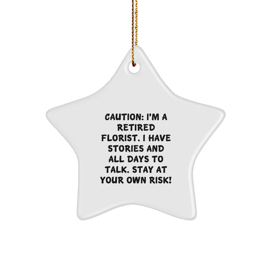 Funny Florist Gifts from Friends - Star Ornament, Caution: I'm A Retired Florist. I Have Stories And All Days To Talk. Stay At Your Own Risk!, Christmas Unique Gifts for Women, Men, Family, Coworkers