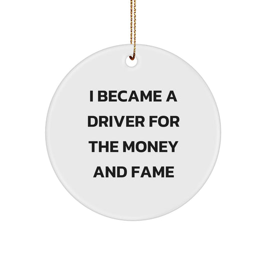 Funny Driver Gifts for Him - Circle Ornament with I Became A Driver For The Money And Fame Quote, Christmas Unique Presents from Friends to Driver