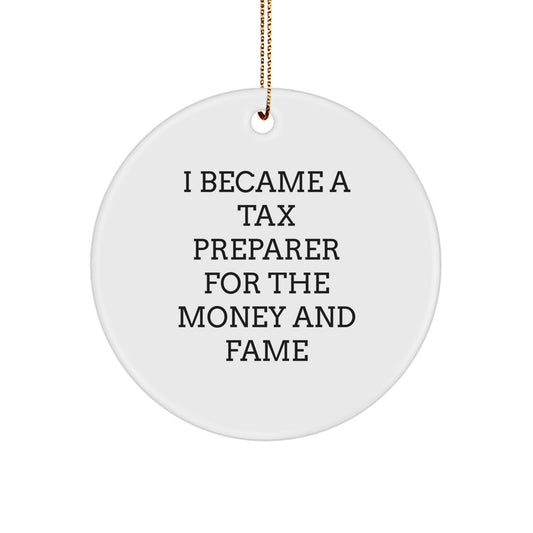 Funny Tax Preparer Gifts from Family, Circle Ornament for Tax Preparer Friends, I Became A Tax Preparer For The Money And Fame Christmas Unique Decorations