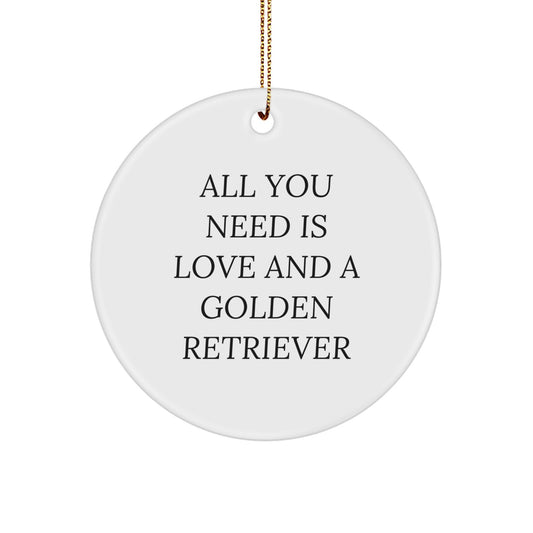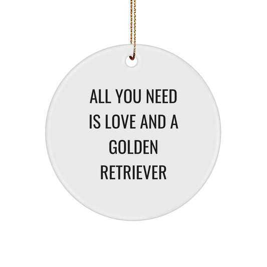 Golden Retriever Dog Gifts: Funny Circle Ornament, All You Need Is Love And A Golden Retriever Quote, Christmas Unique Gifts from Family for Men, Women, or Friends