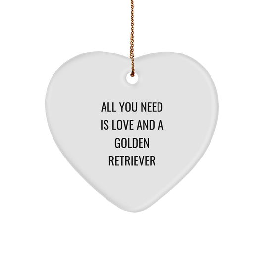 Golden Retriever Dog Lover Gifts from Friends, Family, or Coworkers - 'All You Need Is Love And A Golden Retriever' Heart Ornament for Christmas Unique Gifts
