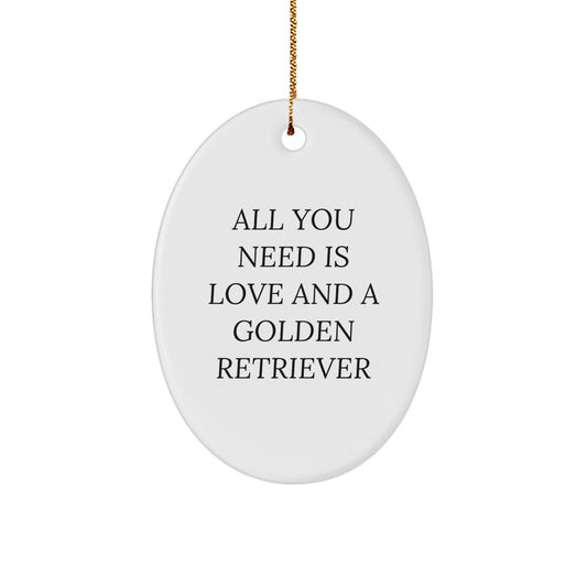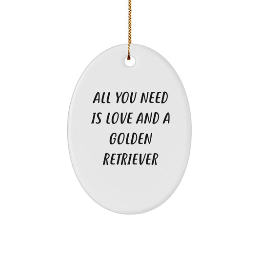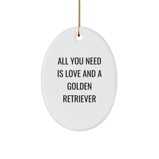Funny Golden Retriever Dog Gifts - Oval Ornament 'All You Need Is Love' for Men, Women, Friends, Coworkers, or Family - Christmas Unique Gifts from Friends to Golden Retriever Dog Lovers