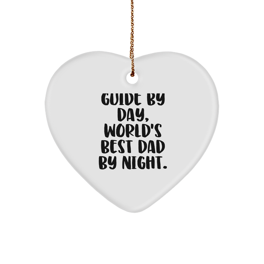 Funny Guide Gifts for Christmas - 'Guide By Day, World's Best Dad By Night.' Heart Ornament