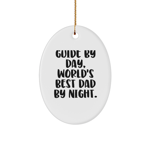 Guide Gifts by Day, World's Best Dad By Night Oval Ornament for Christmas, Gifts from Dad to Guide, Oval Ornament for Men