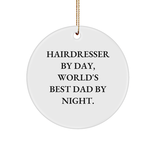 Funny Hairdresser Gifts by Day, World's Best Dad Circle Ornament Night, Christmas Unique Gifts from Dad to Hairdresser