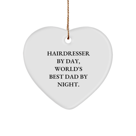 Hairdresser Gifts from Men, Funny Heart Ornament for Christmas, 'Hairdresser By Day, World's Best Dad By Night.'