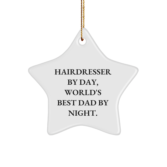 Hairdresser Gifts, Funny Star Ornament, Gifts from Men to Hairdresser, Perfect Christmas Unique Gift for Hairdresser By Day, World's Best Dad By Night.